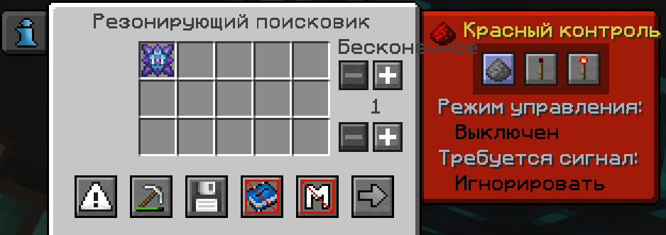 Каждый поисковик нужно <mark style="color:red;">**настроить**</mark>. Необходимо выбрать <mark style="color:yellow;">**белый список**</mark>, <mark style="color:purple;">**добавить предмет в фильтр**</mark>, который нужно передавать в инжектор/корпус, а также в настройках извлекаемого стака нужно <mark style="color:green;">**выбрать количество 1**</mark>. Красный контроль - <mark style="color:red;">**Игнорировать**</mark>.