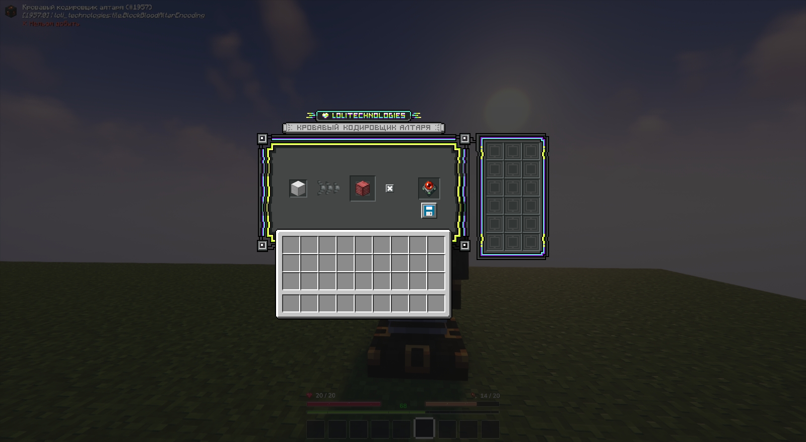 Позволяет закодировать крафт на Кровавом алтаре с помощью Диска с шаблонами для Кровавого сборщика.