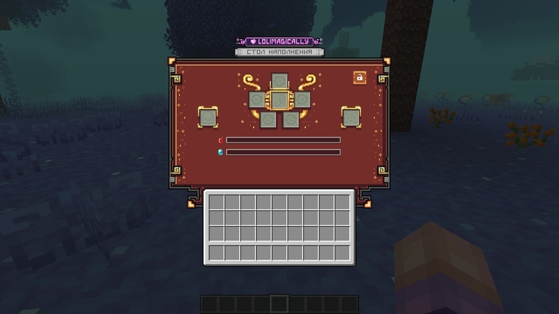 Магический механизм, открывающий доступ к большому количеству новых крафтов, необходимых для успешного прохождения сборки. Работает он на аспектах Thaumcraft, на крови из BloodMagic, а также на мане из Botania
