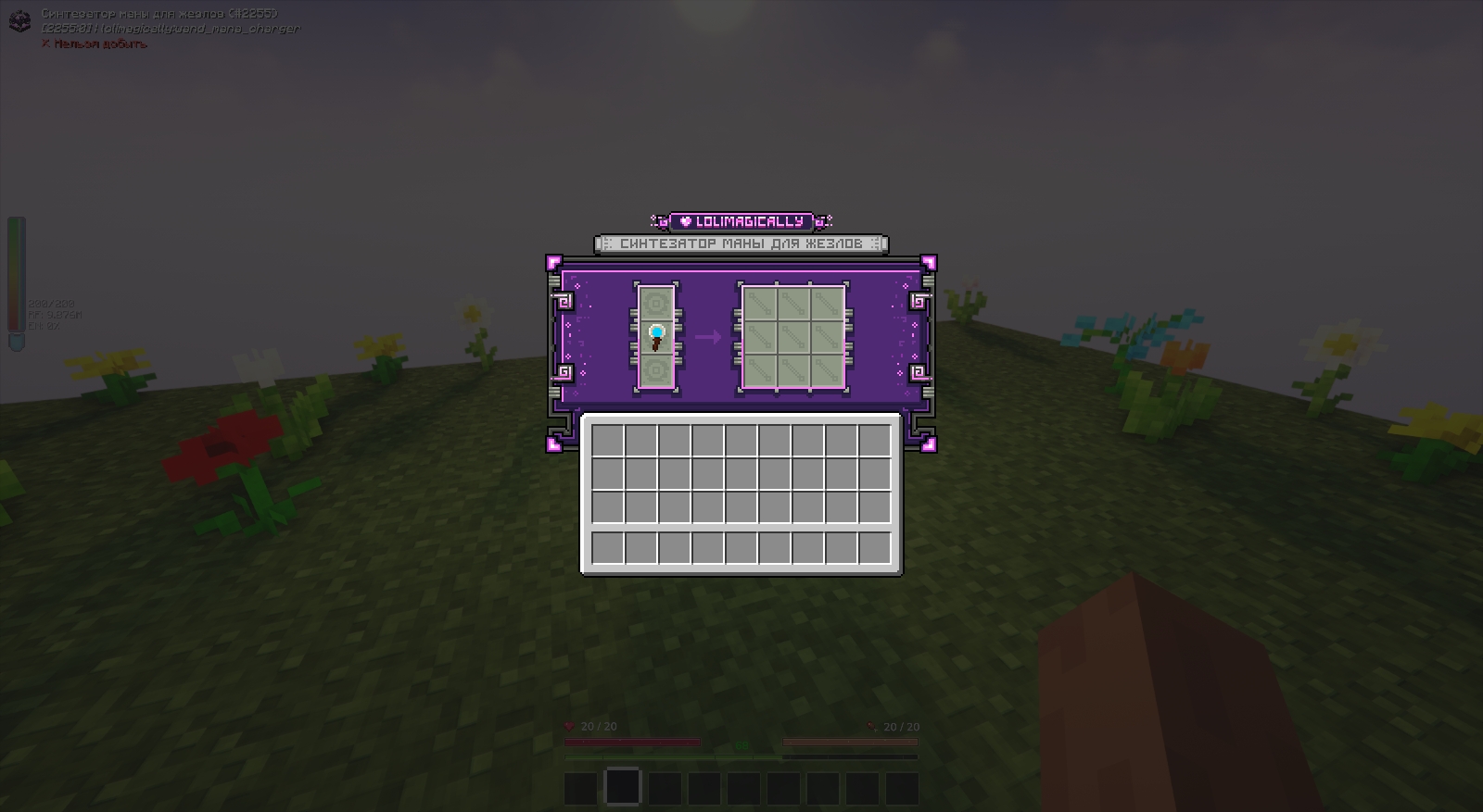 Помогает заряжать жезлы с помощью маны из мода Botania. Имеет 9 слотов для жезлов и 3 слота для предметов, использующих ману.