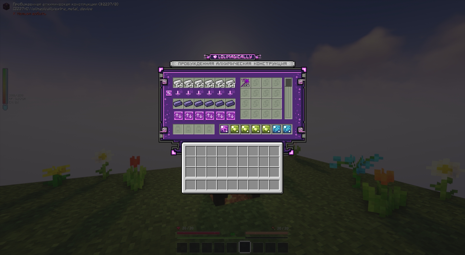 Улучшенная версия алхимической конструкции. Имеет 6 слотов для наполнения предметов эссенцией. Для ее наполнения эссенцией нужен поставщик наполнения, стоящий рядом.
